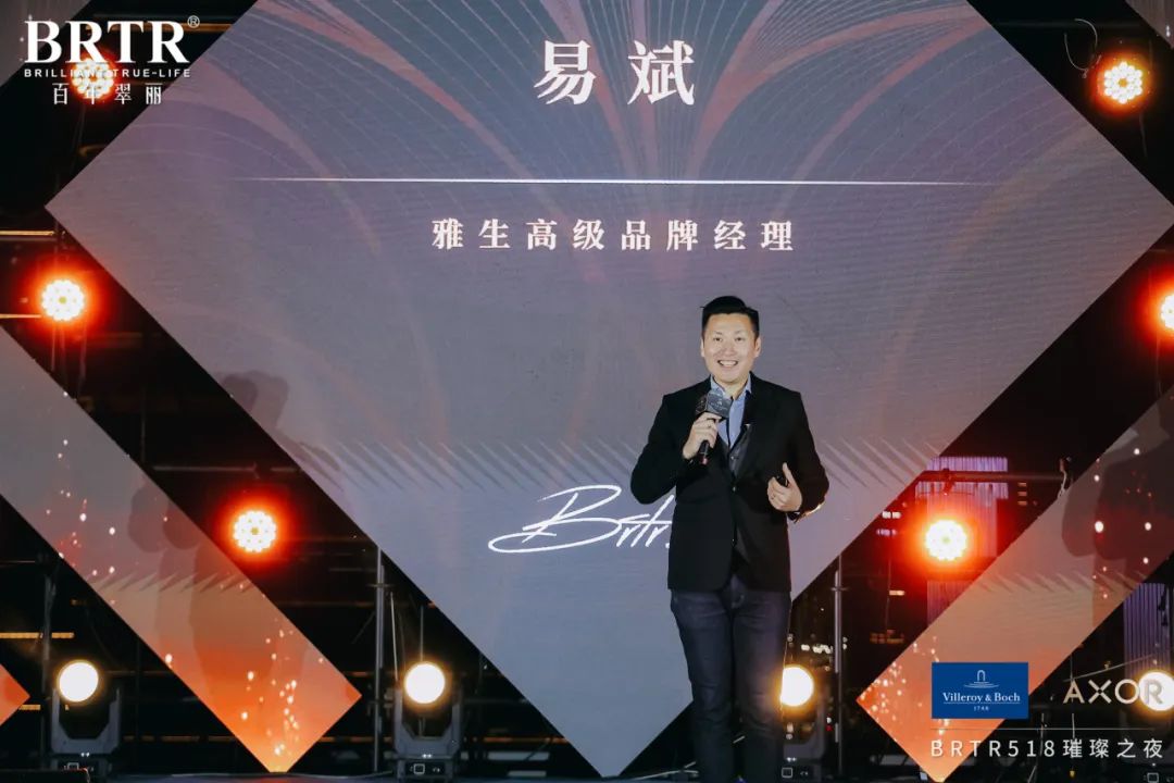 雅生高级品牌经理易斌先生登台分享,雅生作为德国汉斯格雅旗下厨卫个性设计品牌,不断探索水的多样形态与体验方式,将“突破常规”作为自己的使命。