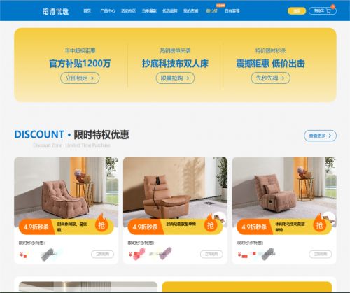 该平台主要有:家具(沙发、床、桌椅等)、家居饰品、家纺用品、厨卫用品等。