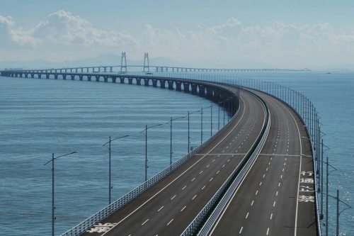 港珠澳大桥,位于广东珠江口伶仃洋海域内,是中华人民共和国境内一座连接香港、广东珠海和澳门的桥隧工程,全长55千米,是世界上最长的跨海大桥。其设计采用了世界先进的桥梁技术和施工工艺,充分体现了中国在桥梁建设领域的技术实力和创新能力。大桥的建成有利于缩短地区间的径迹差异,促进了珠三角地区的经济发展和区域一体化。