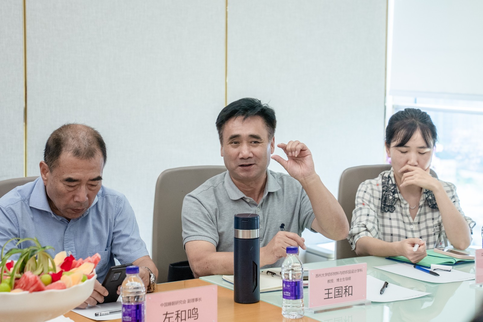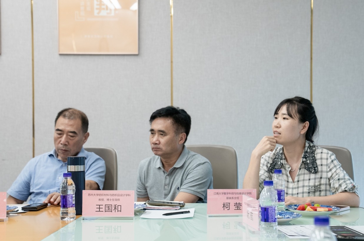 ▲中家纺协会副会长葛江霞女士主持座谈会